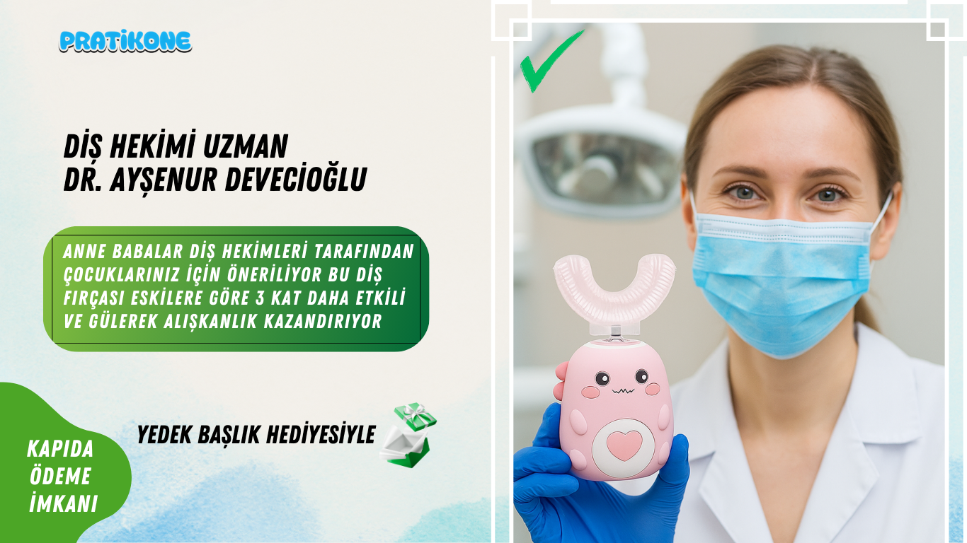 360 Derece U Şeklinde Şarjlı Çocuk Diş Fırçası