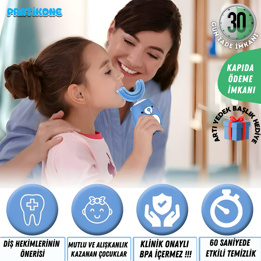 360 Derece U Şeklinde Şarjlı Çocuk Diş Fırçası