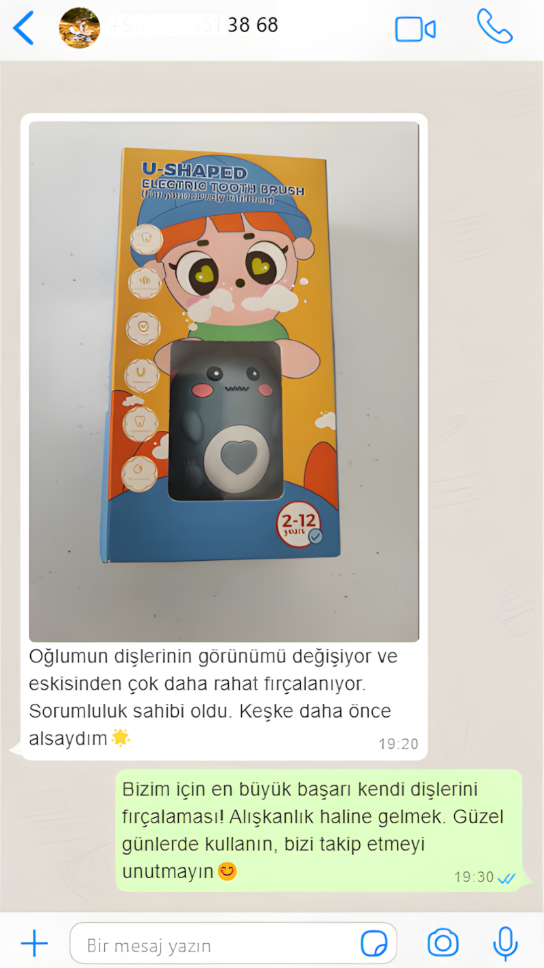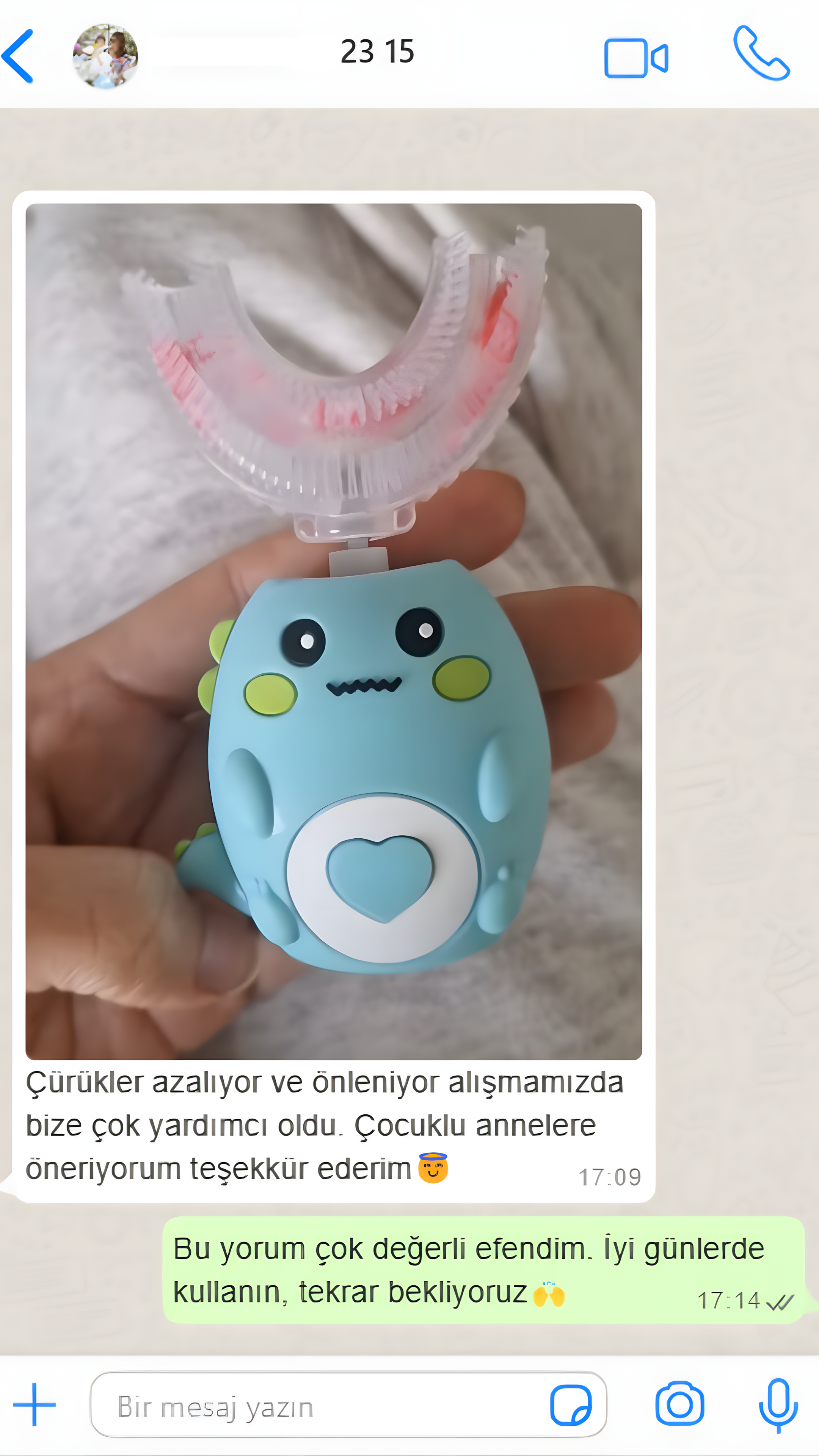 "Oğlumun dişlerini düzgün fırçalamadığını görünce bu ürünü aldım. Gerçekten işe yarıyor! Şarjlı olması da büyük kolaylık. Keşke daha önce alsaydım!"